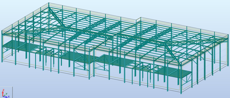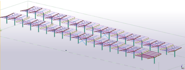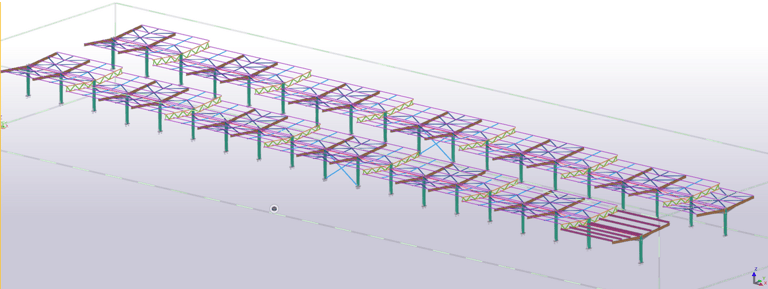 (Vue de la perspective - TEKLA) Mission : En phase d’exécution, Note de calculs, descente de charges, Plans d’ensemble, plans de fabrication, plans de montage et listes.