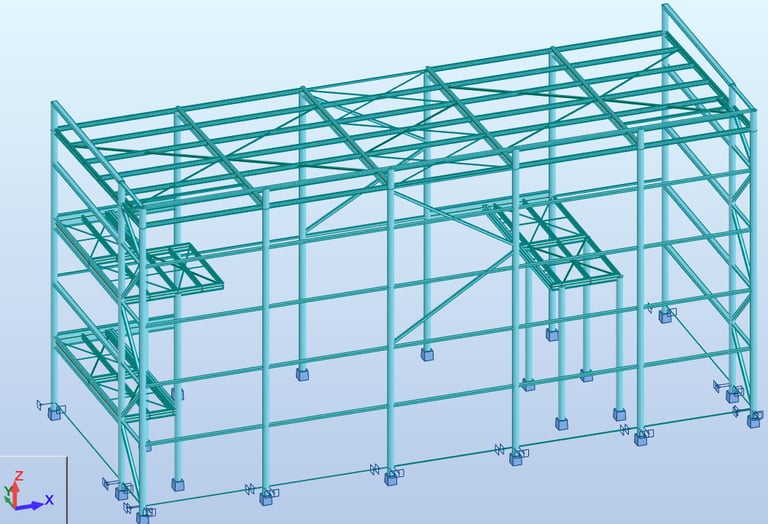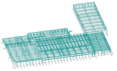 (Vue du modèle de calcul - ROBOT) BÂTIMENT D’ACTIVITE ET BUREAUX Mission de diagnostic, de renfort de structure et de contre calculs.